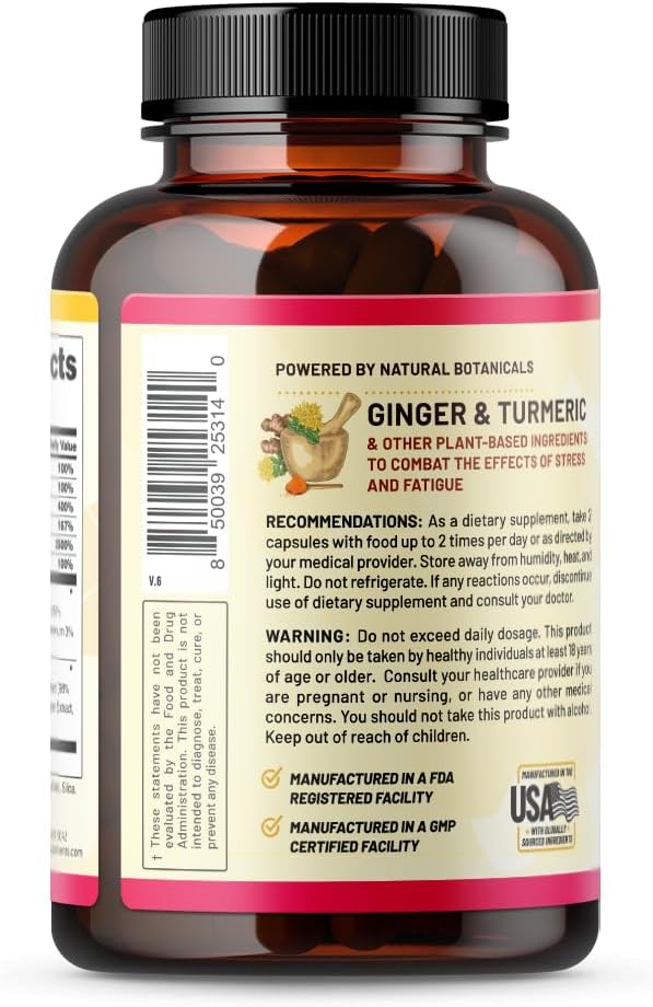 Metabolism and Natural Energy Supplements for Fatigue, Stress Relief, Energy Booster & Better Mood, Energy Pills for Women & Men, Ginger, Turmeric, Rhodiola Rosea, 60 Capsules