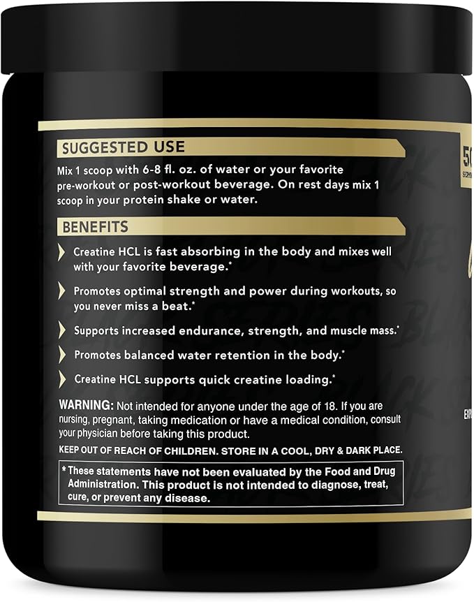 • Maximize Strength* - Creatine Carnage HCL uses ultra-pure ingredients to provide you with maximum results. Many creatine supplements are underdosed and produce little to no results. This product utilizes the power of Creatine HCL to support increased strength and power.*