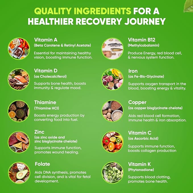 • ✅【Enhanced Nutrient Absorption】: Our veggie capsules are gluten-free and carefully crafted to be easy on your digestive system. This design promotes the efficient breakdown and absorption of essential vitamins and minerals, aiding your body in its post-surgery recovery journey. We prioritize bioavailability to ensure your new system receives the nourishment it requires.