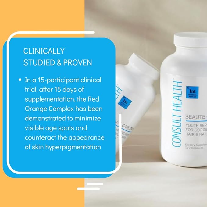 Consult Health Beaute Caps Pro - Collagen Supplement - Biotin 10,500mcg, MSM, Blood Orange for Skin, Hair, Nails Health - Collagen Vitamins - Anti-Aging, USA Made