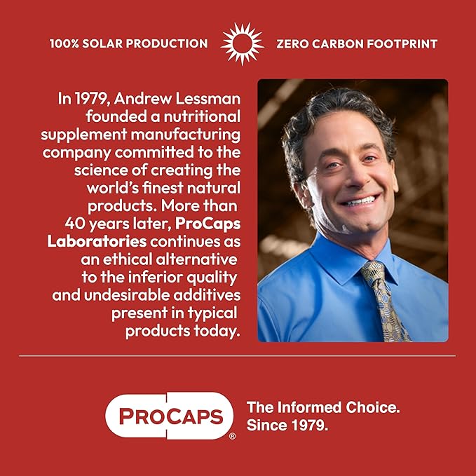 • ETHICAL & ECO-FRIENDLY. ZERO CARBON FOOTPRINT – Uniquely committed to your health and the health of the planet, ProCaps’ facilities are 100% Solar Powered with a Zero Carbon Footprint and an LEED GOLD green building status. ALL ProCaps bottles are made from 100% recyclable post-consumer resin. Plus, Andrew Lessman and ProCaps are the largest donor of prenatal vitamins in the world (over 1.5 billion capsules donated to date). ProCaps, the Informed Choice for Nutritional Supplements.