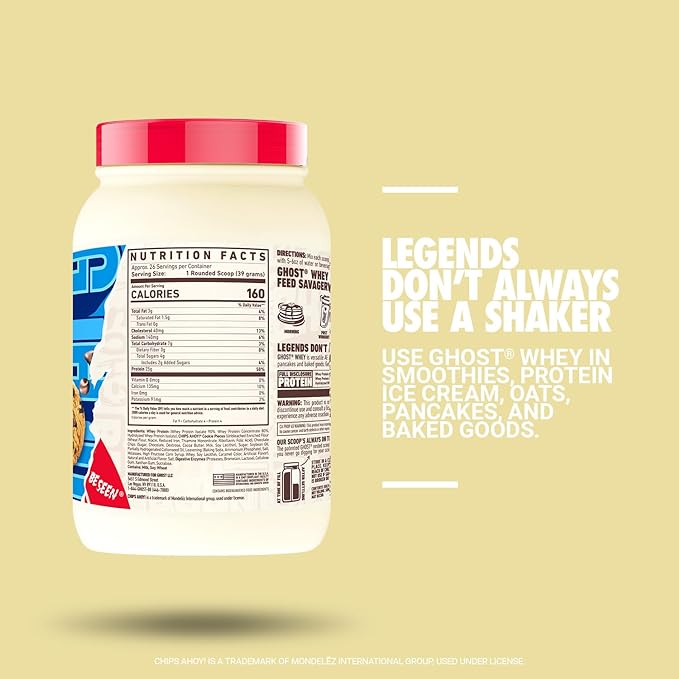 • Versatile and Delicious: GHOST Whey x Chips Ahoy! combines a premium, fully disclosed whey protein blend, a few digestive enzymes, and real Chips Ahoy! cookie pieces in every scoop for a flavor that is second to none. 26 servings.