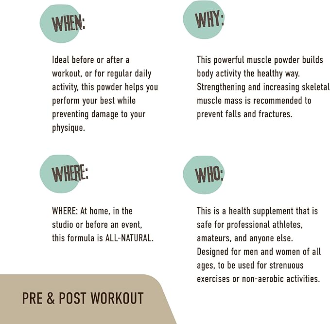 • All-Natural Healthy Exercise Supplement: This Natural Powder Supports Muscles And Promotes Bodybuilding. It Is Certified Kosher, And Contains No Animal Products, Soy, Wheat, Salt, Yeast, Sugar, Gluten, Milk, Artificial FLavors, Colorings Or Preservatives.