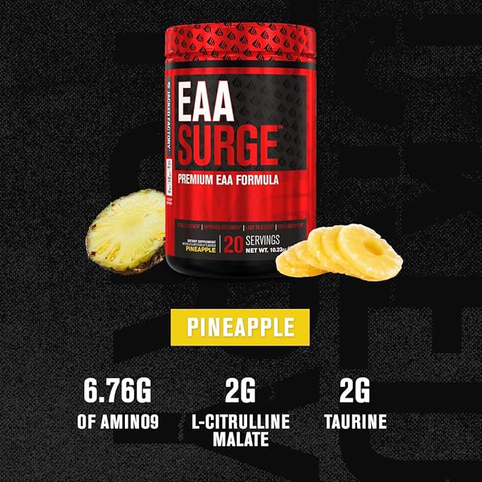 Jacked Factory EAA Surge Essential Amino Acids Powder - EAAS & BCAA Intra Workout Supplement w/L-Citrulline, Taurine, & More for Muscle Building, Strength, Endurance, Recovery - Pineapple, 20sv
