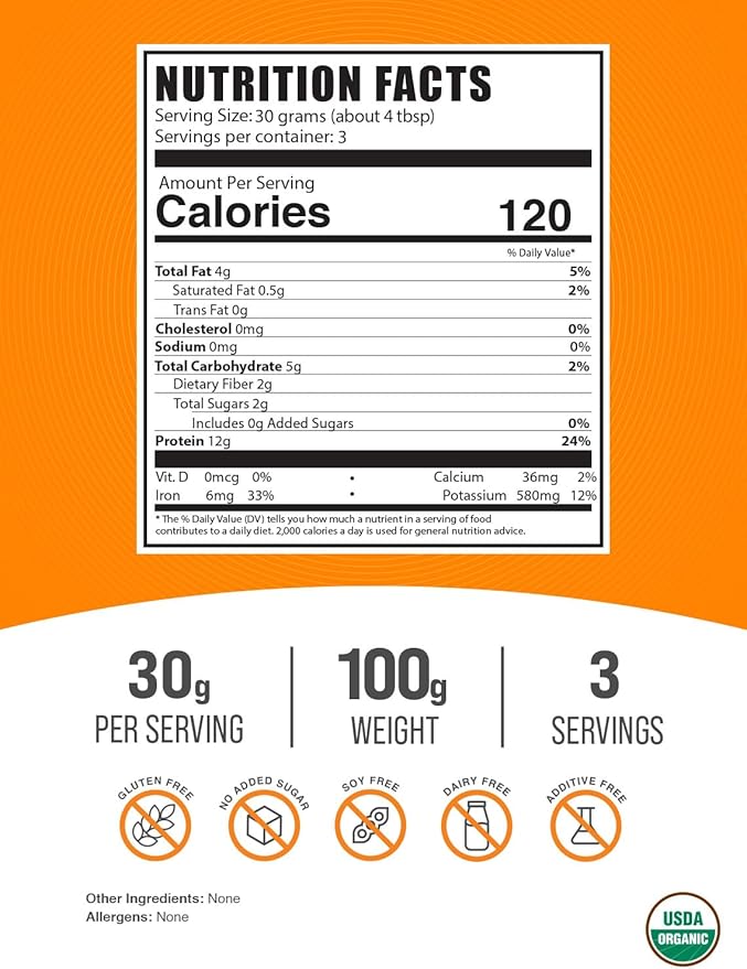 BulkSupplements.com Organic Hemp Seed Powder - Vegan Protein Powder - Unsweetened Protein Powder - Superfood Protein Powder (100 Grams - 3.5 oz)