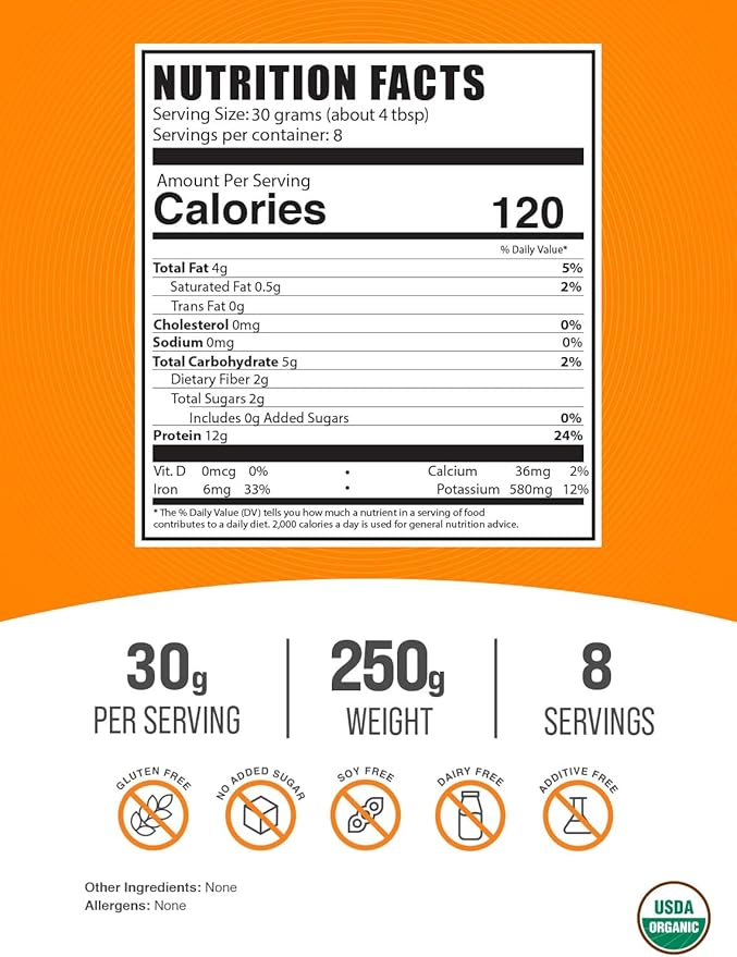 BulkSupplements.com Organic Hemp Seed Powder - Vegan Protein Powder - Unsweetened Protein Powder - Superfood Protein Powder (250 Grams - 8.8 oz)
