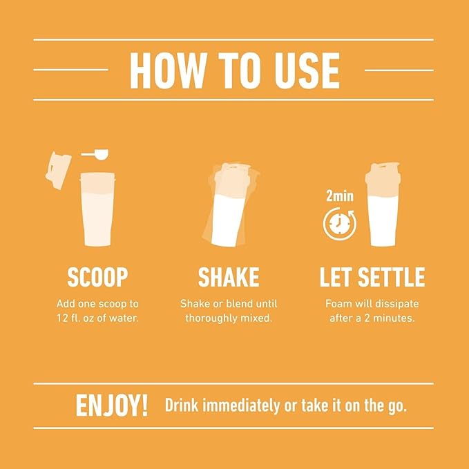 • SHAKE DON'T STIR: For best results, mix 1 scoop in 10-16 oz of cold water, shake & wait a minute or so for the natural foaming to clarify before drinking.