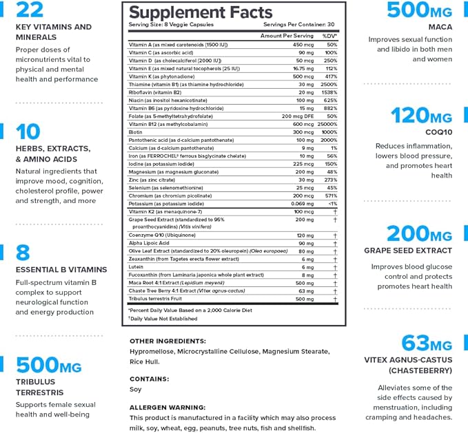 • HELPS OPTIMIZE YOUR HEALTH, PERFORMANCE, & WELL-BEING. Triumph multivitamins contain 21 vitamins and minerals and 14 herbs, amino acids, plant extracts, and other substances that supports a healthier, stronger body and mind.
