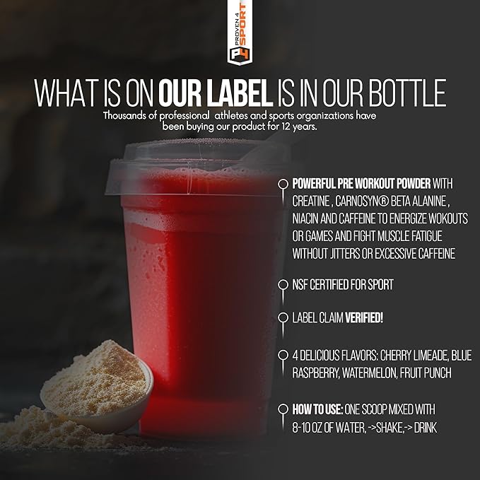 Proven4 Pre Workout Powder for Men and Women with Creatine - Beta Alanine - Caffeine NSF Certified preworkout Energy Supplement Chery Limeade 30 Servings
