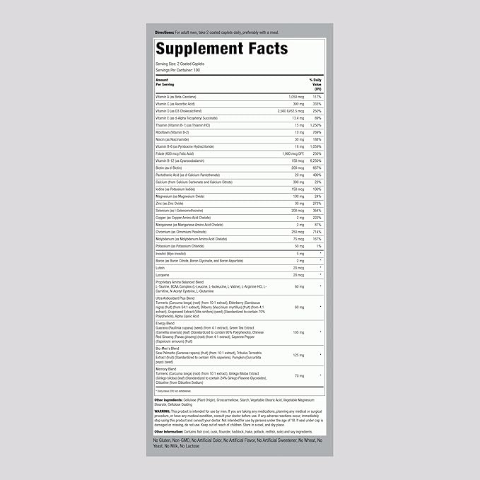 Piping Rock Multivitamin for Men Over 50+ | 200 Caplets | Mega 50 Plus Daily Multimineral | with Magnesium, Calcium, Zinc | Non-GMO, Gluten Free Supplement