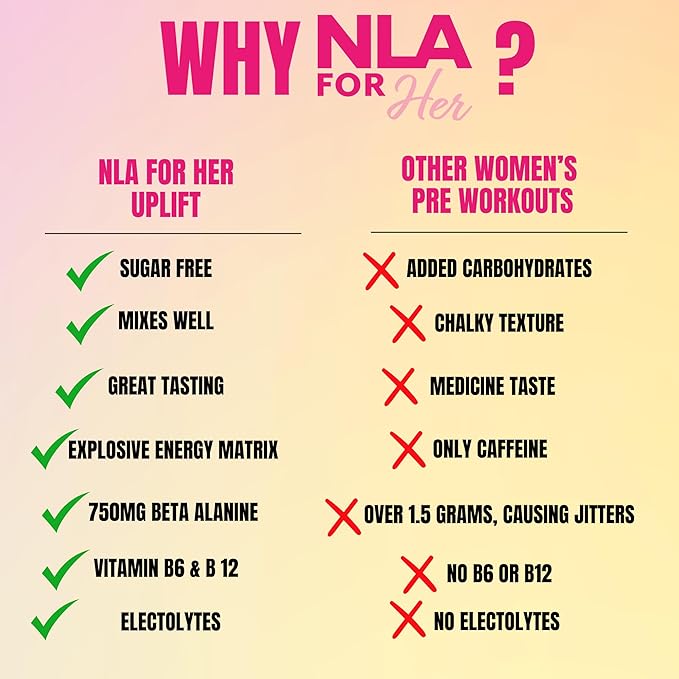 • 💪🏼 THE NLA DIFFERENCE - NLA for Her is the pioneer of women’s sports supplements! It’s our mission to provide women of all fitness levels with the highest quality, best tasting, effective sports supplements on the market!