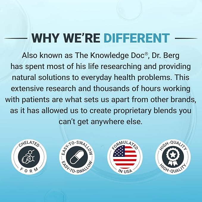 • 𝗪𝗛𝗬 𝗪𝗘’𝗥𝗘 𝗗𝗜𝗙𝗙𝗘𝗥𝗘𝗡𝗧 - Also known as The Knowledge Doc, Dr. Berg has spent most of his life researching and providing natural solutions to everyday health problems. This extensive research and thousands of hours working with patients are what sets us apart from other brands, as it has allowed us to create proprietary blends you can’t get anywhere else.