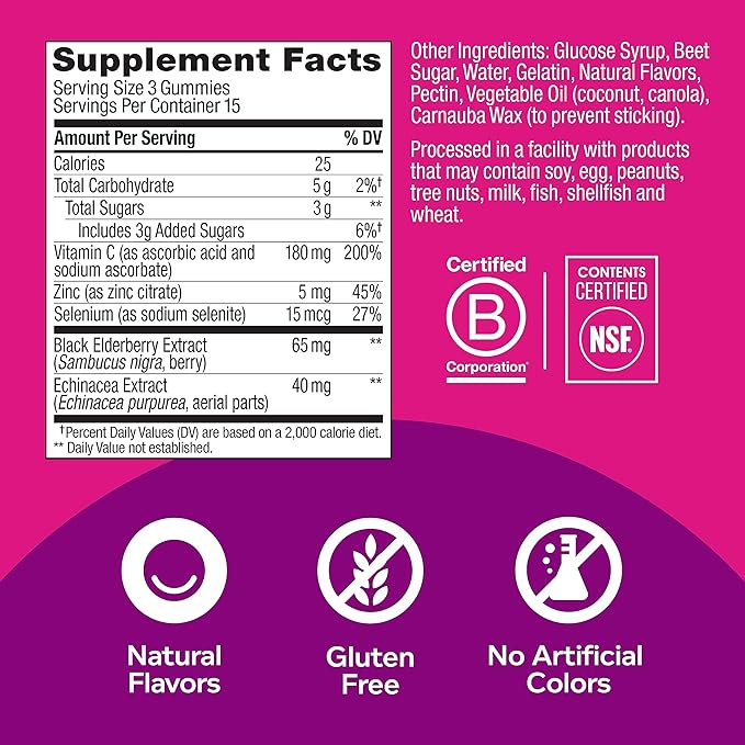 OLLY Immunity Gummy, Immune Support, Elderberry, Zinc, Vitamin C, Supplement, Berry Flavor, 15 Day Supply - 45 Count