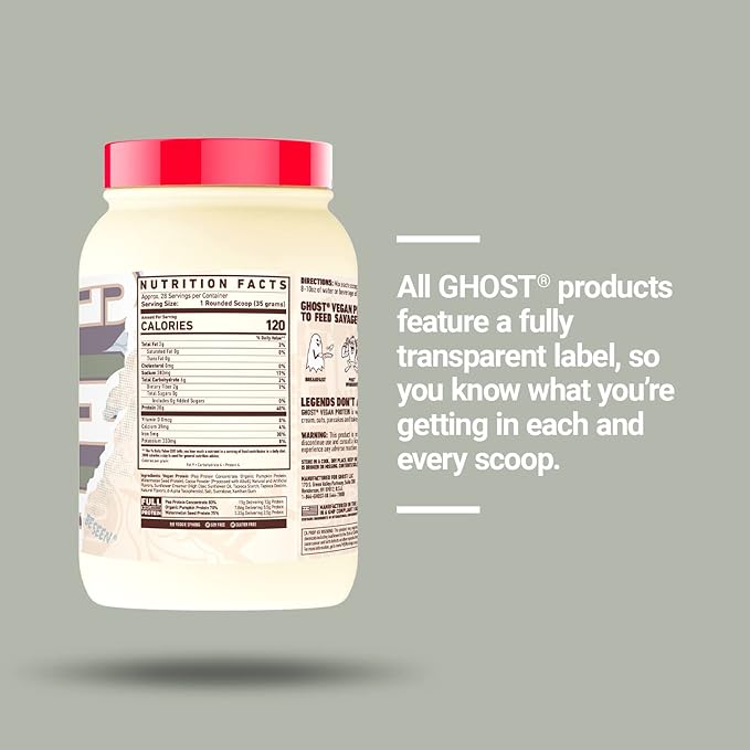 • 20G Vegan Protein: Every scoop of GHOST Chocolate Cereal Milk Vegan Protein contains 20G of pure, fully disclosed vegan protein. Flip the tub around for a breakdown of exactly how many grams of pea protein concentrate, organic pumpkin protein, and watermelon seed protein are in every scoop.