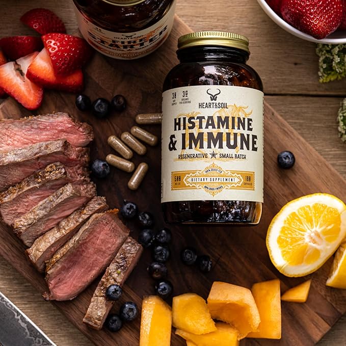 HEART & SOIL - Histamine & Immune Supplement - Immune Support Supplement - Enriched with Selenium, Vitamin A, Thymopoietin, Thymulin, DAO, Thymosin, LEAP-2 & Peptides - 180 Capsules