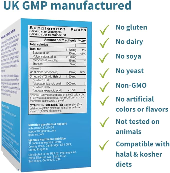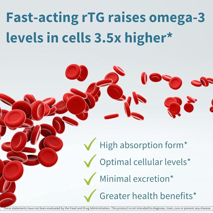 • HIGH ABSORPTION rTG OMEGA-3 FORM: re-esterified triglyceride is the most absorbable form of omega-3, raising omega-3 levels in cells 3.5x higher than standard triglyceride
