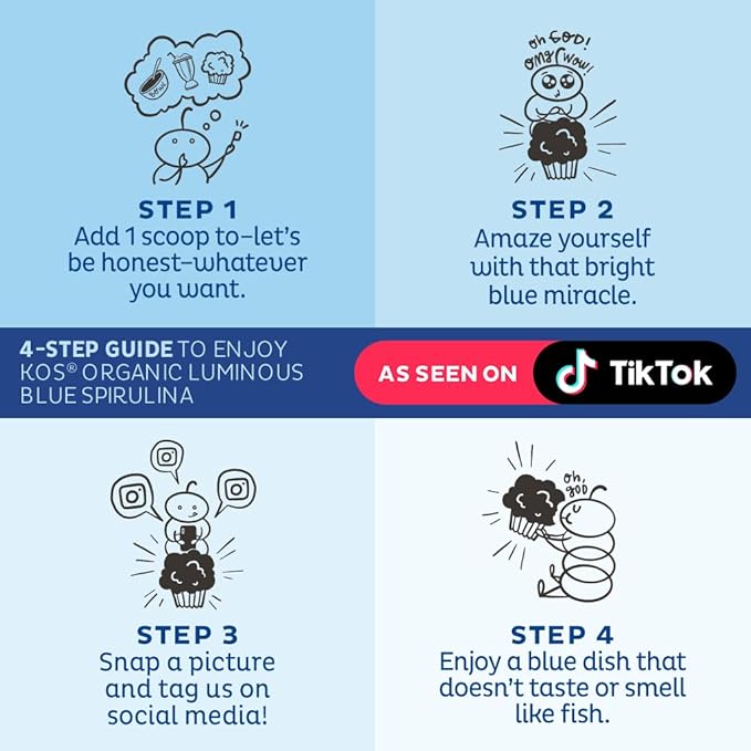• Bolt from the blue: We started with Blue Spirulina and hand selected the rest to energize your day- Cordyceps, Lion's Mane, Rhodiola, Ashwaganda, Ginsing, and green coffee extract. Add 1 scoop to cold water or juice and froth for a vivid blue lift.