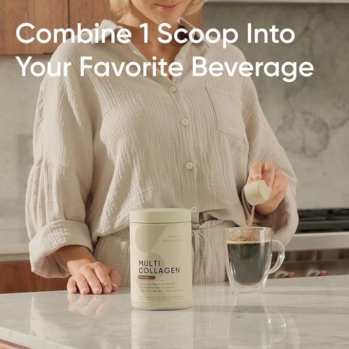 • EASY TO USE: Meet your new morning ritual! Dissolving conveniently and easily in hot or cold water, Sports Research Multi Collagen Peptides tastes great and dissolves in coffee, tea, smoothies, soups, and more. Our complex formula is an easy way to supplement collagen type I, II, III, V and X into your daily ritual. Multi Collagen powder for women and men provides support for healthy joints, bones, & nails.