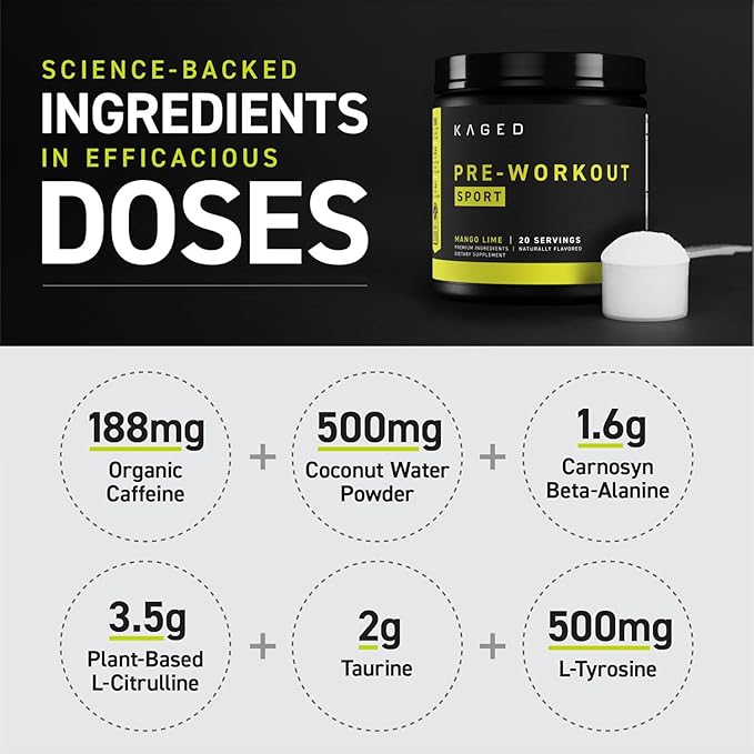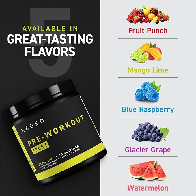 Kaged Pre-Kaged Sport Pre Workout Powder | Mango Lime | Energy Supplement for Endurance | Cardio, Weightlifting Sports Drink | 20 Servings