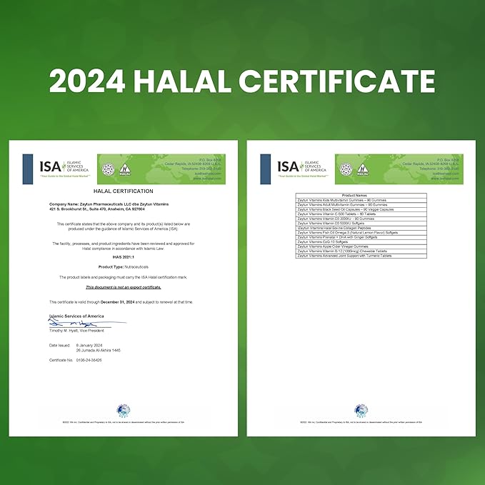 • HALAL CERTIFIED: Our Vitamin D3 5000IU supplement is Halal certified by the Islamic Services of America, ensuring that it meets the strict dietary requirements of our customers.
