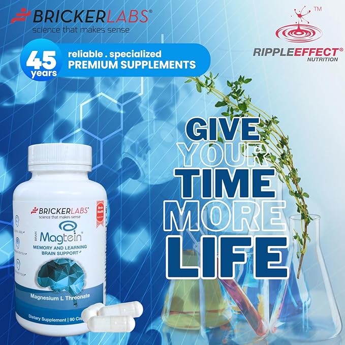 • Think clearly: Bricker Labs MAGTEIN Magnesium L Threonate Brain Support Supplement, the most bioavailable magnesium for the brain. Magtein memory supplement and cognitive health. Effectively crosses blood-brain barrier, supporting brain cell communication and signaling pathways associated with learning, memory and focus.