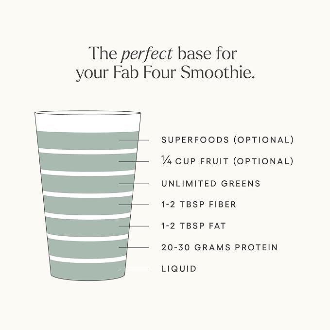 • PERFECT FOR A FAB FOUR SMOOTHIE. Incorporate this Grass-Fed Beef Protein Powder into your Fab Four Smoothies. Make a satisfying smoothie and get all the protein you need with 1 scoop of powder plus fat, fiber & greens