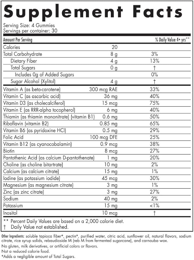 • ZERO SUGAR - Our naturally-flavored, certified vegetarian gummies are sweetened with xylitol and stevia, not sugar.
