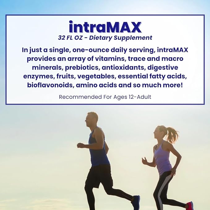 • IntraMAX FAST ACTING LIQUID MULTIVITAMIN SUPPLEMENT: IntraMAX 2.0 is an organic liquid trace mineral and multi-nutritional dietary supplement. Its recently improved all-in-one formula contains over 415 essential ingredients including Vitamins, Antioxidants, Fibers, Omega 3, 6 & 9, Probiotics, Amino Acids, Herbs, Proteins, and much more!
