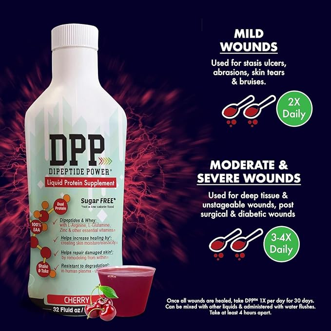 • PROMOTES WOUND HEALING: The unique blend of dipeptides, collagen, and whey protein in this supplement has been shown to promote wound healing, making it a valuable supplement for individuals with pressure ulcers stages II, III, & IV, deep tissue/unstageable wounds, geriatrics with decreased blood flow and skin elasticity, and immunocompromised/diabetes. Clinically supported in peer reviewed published studies.