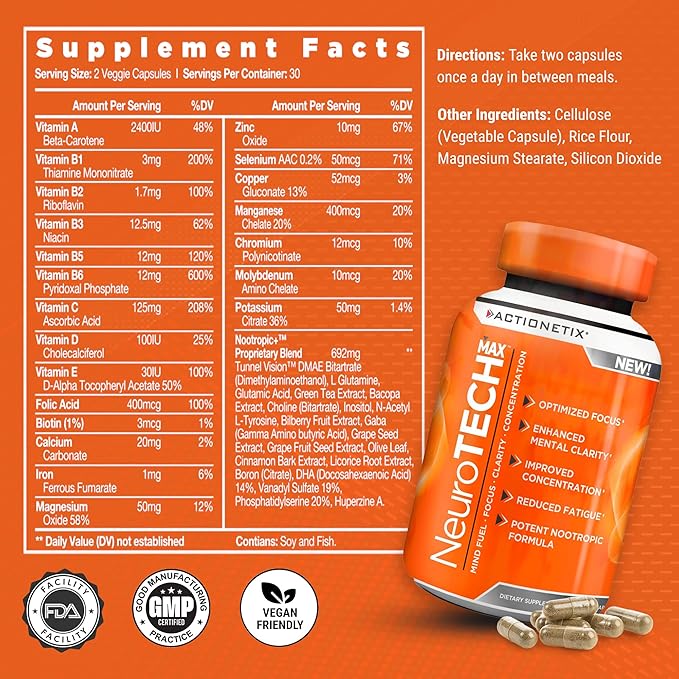 • Improve Mental Performance - Stay mentally sharp with NeuroTech MAX nootropic brain health supplement for adults. Each brain boost capsule delivers specific ingredients including nootropics to support mental clarity, improve focus, & reduce brain fog (without a caffeine crash).