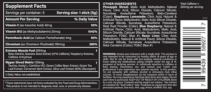 • Boost Endurance – Complete with Beta Alanine, Guarana Seed Extract and Caffeine, The Ripper! is a thermogenic pre-workout that helps boost endurance, supports performance and reduces lactic acid buildup so you can go harder for longer