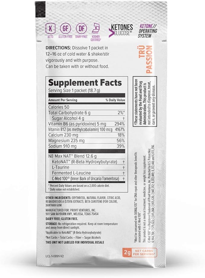PRÜVIT Keto//OS NAT® Tru Passion Keto Supplements – Caffeine Free - Exogenous Ketones - BHB Salts Ketogenic Supplement for Workout Energy Boost for Men and Women (20 Count)