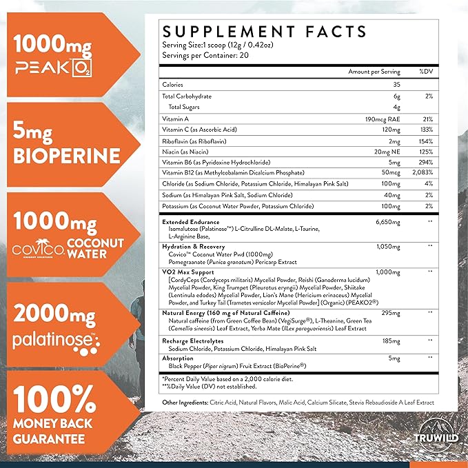 • SUSTAINED ENERGY SUPPORT: Most pre-workout powders are designed to support an hour of indoor exertion. TRUWILD Motion utilizes 5 trademarked ingredients to deliver sustained energy support and ongoing hydration with electrolytes and coconut water.*