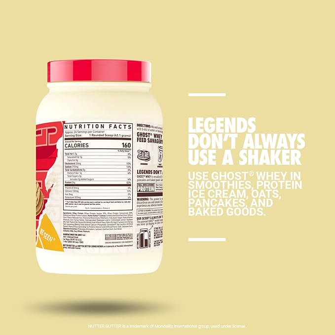 • Versatile and Delicious AF: GHOST WHEY x NUTTER BUTTER combines a premium, fully disclosed whey protein blend, a few digestive enzymes, and real NUTTER BUTTER cookie pieces in every scoop for a flavor that is second to none. 26 servings.