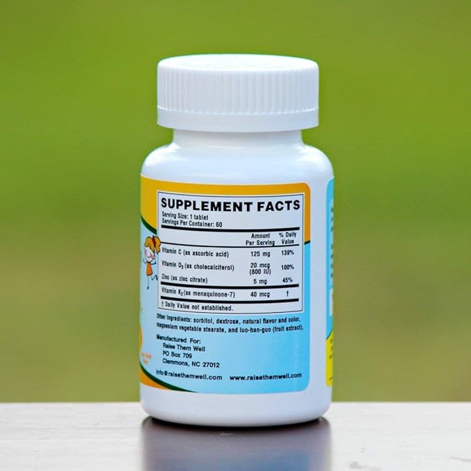 • ALL IN ONE SOLUTION - Raise Them Well childrens' vitamin c contains not only vitamin c, but Vitamin D3, K2, and Zinc.
