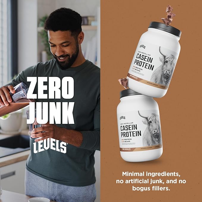• LEVELS CASEIN PROTEIN: Each scoop of Levels Chocolate Casein contains 24g Protein, 5.2g BCAAs (branched-chain amino acids), and no added sugars. Trusted by athletes, fitness enthusiasts and daily grinders everywhere, our products are crafted for everyone’s lifestyle.