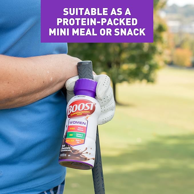 • Tailored Nutrition: BOOST Women contains iodine and selenium to help support normal thyroid function, calcium and vitamin D to support strong bones and biotin and zinc to support skin and hair health