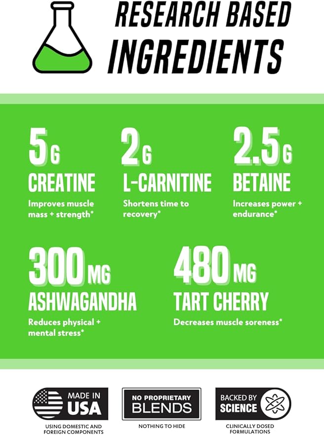 • Backed By Science: Our deliciously flavored post-workout powder for men and women contains ingredients backed by peer-reviewed scientific research at the proper dose to maximize your muscle recovery, including Creatine Monohydrate, Betaine, Tart Cherry Powder, and L-Carnitine
