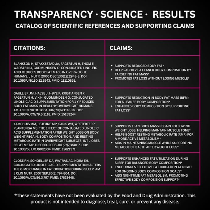 • Natural and Science-Backed – Features CLA, a naturally occurring fatty acid supported by multiple randomized control trials and scientific studies for its effectiveness in improving body composition*