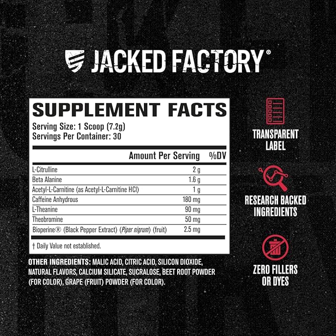 • Manufactured in a cGMP-Certified Facility: Unlike many dietary supplements, all Jacked Factory products are manufactured under stringent quality control standards to ensure proper purity and potency. This formula is completely free of harsh chemicals, fillers, and artificial food dyes.