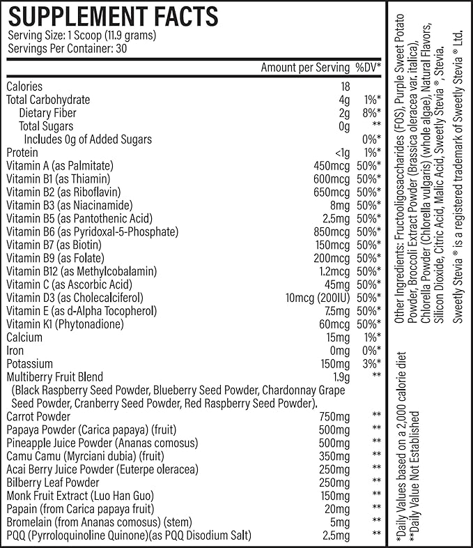Built For Xtreme Replenish Energy Fruits and Greens Immune Boost, Lemon Lime Flavored Superfood Powder 12.59oz for Total Body Wellness and Immunity Boost