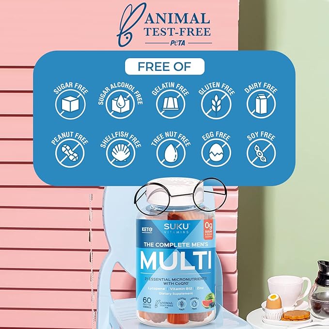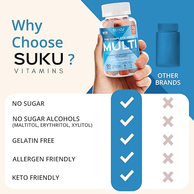 • Product Benefits : SUKU Vitamins - Complete Men's Multi - MicroNutrients: CoQ10, Lycopene Gummies for Prostate Health - Easy to Chew - Non GMO, Gluten Sugar Free - Mixed Fruit Fusion Gummy Vitamins, 60 Count SUKU Vitamins - Complete Men's Multi - MicroNutrients: CoQ10, Lycopene Gummies for Prostate Health - Easy to Chew - Non GMO, Gluten Sugar Free - Mixed Fruit Fusion G… See more
