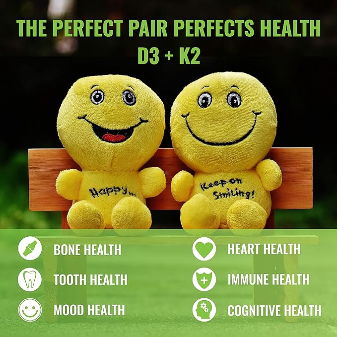 • PROMOTES CALCIUM UTILIZATION: Vitamin D3 aids in calcium absorption, while K2 MK-7 helps ensure that calcium is properly utilized, supporting strong bones, teeth, and overall skeletal health*