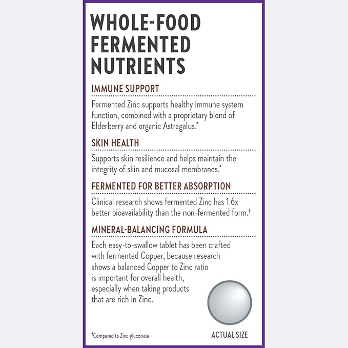 • SKIN HEALTH: Fermented Zinc supports healthy skin from the inside out, helping to maintain your skin’s integrity and resilience*