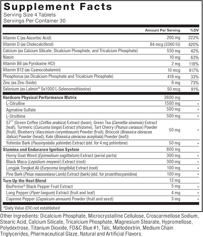 • ENHANCE PHYSICAL ENERGY: The hardcore physical performance matrix includes natural caffeine derived from green coffee beans and green tea leaves, helping to supply your body with the powerful energy you crave.