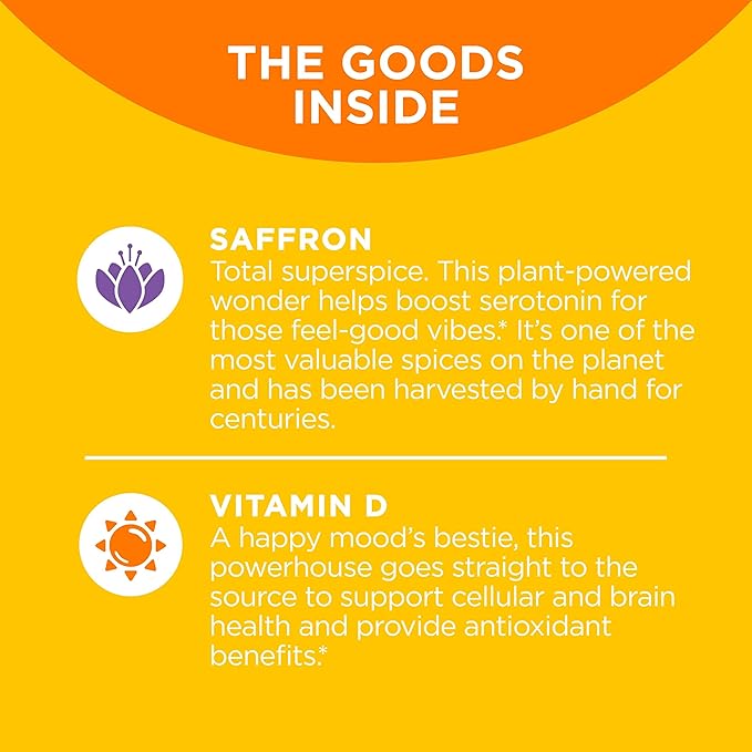 OLLY Hello Happy Gummy Worms, Mood Balance Support, Vitamin D, Saffron, Adult Chewable Supplement, Tropical Zing - 60 Count