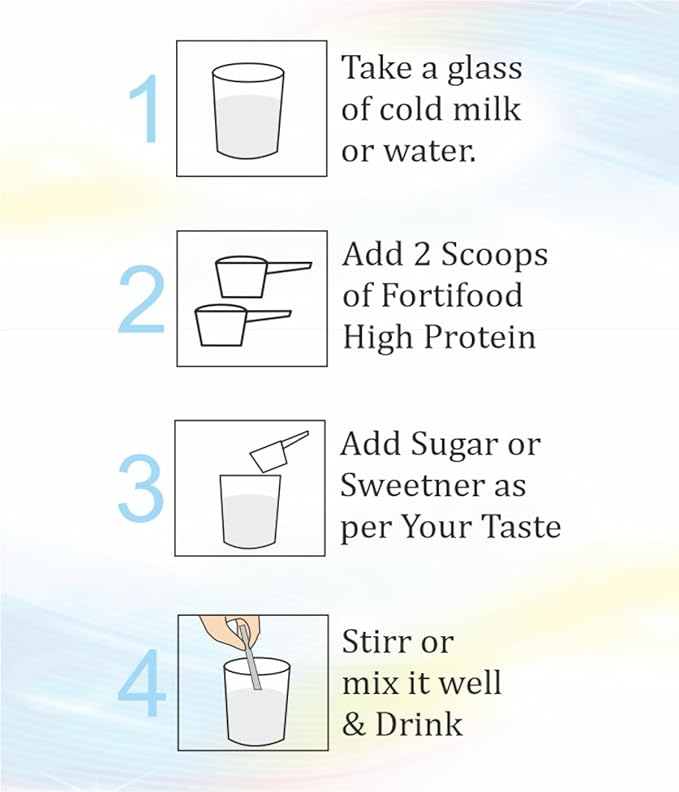 • DELICIOUS COMPLETE PROTEIN SHAKE: It is super easy to beat FORTIFOOD High Protein Powder into milk to make a smooth creamy shake or blend it with your favorite beverage or make smoothies. Enjoy it as a post-workout recovery shake, a nutritious breakfast option, or a satisfying snack to keep you fueled throughout the day.