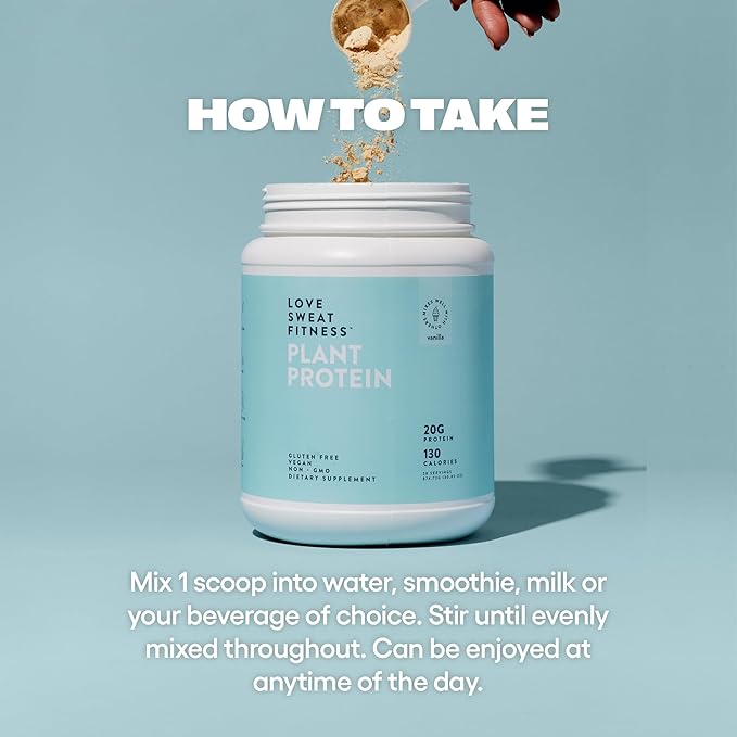 Love Sweat Fitness Organic Vegan Protein Powder | Vanilla | 28 Servings, 20g Protein, No Sugar, Vegan, Gluten Free, Non-GMO