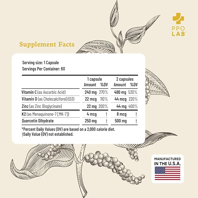 • Special Ingredients : Quercetin with Vitamin C and Zinc, D3, & K2 MK7
