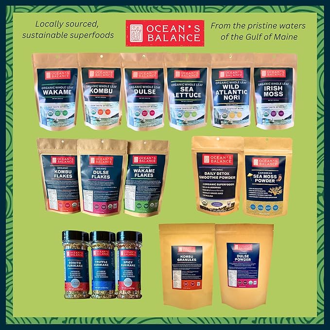 • Irish Moss from the Atlantic: 95% of the sea greens that Americans eat are Asian-imported seaweeds. Our "Made in America” Irish sea moss organic is so much better, fresher, and homegrown. The demand for organic healthy foods has entered the mainstream and Ocean’s Balance whole leaf dry seaweed is a front runner for healthy snacks.